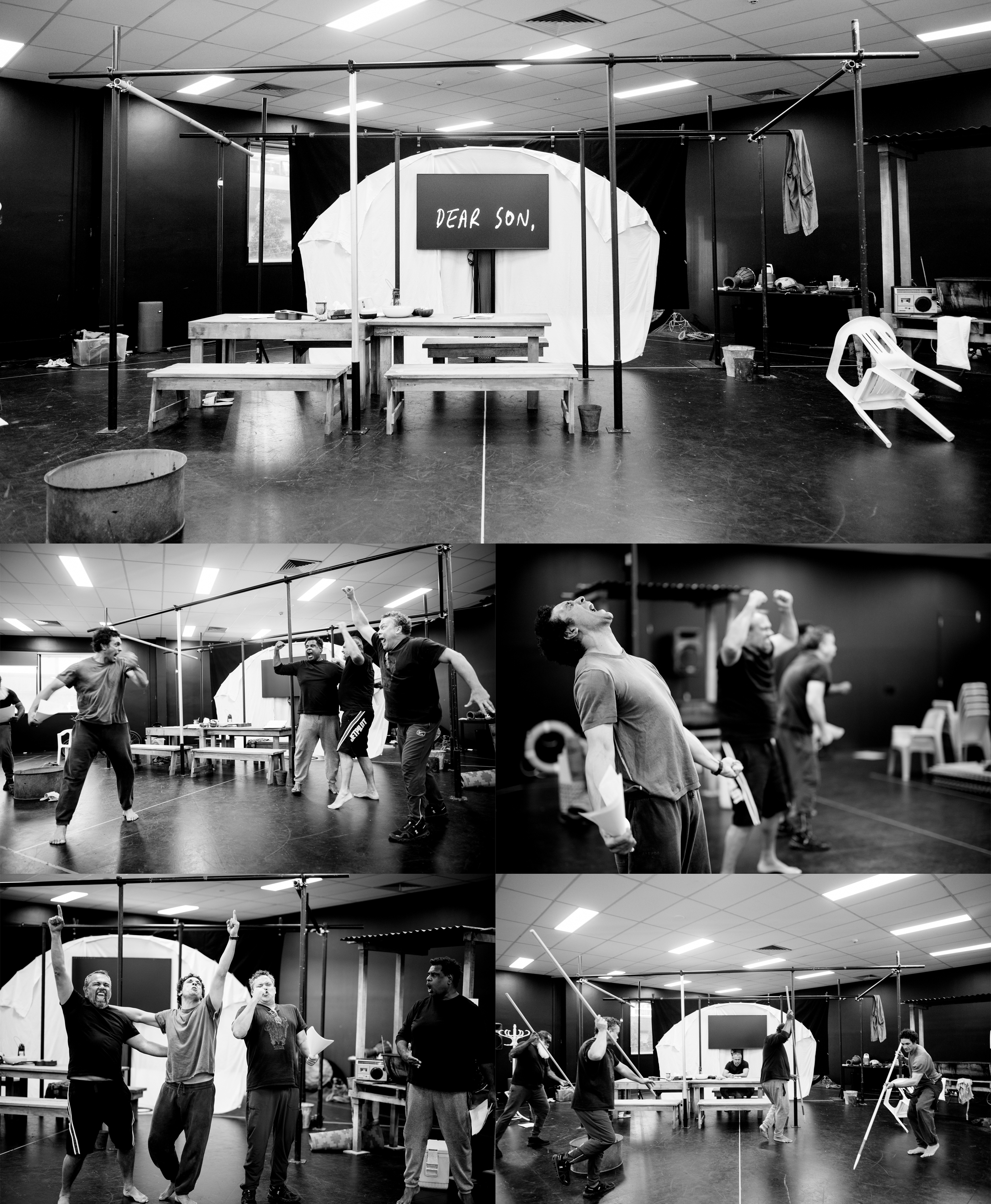 - Consider the co-adaption process with John Harvey that Isaac speaks of “to bring some of the language and some of the letters into the present tense. And by doing that we were able to make these letters and the men, the actors, active in the storytelling.” How are the dramatic languages manipulated in the production for example, the physical language, sonic (sound) language, design languages of video, set, costume and lighting to achieve this? See the below statements from the Dear Son