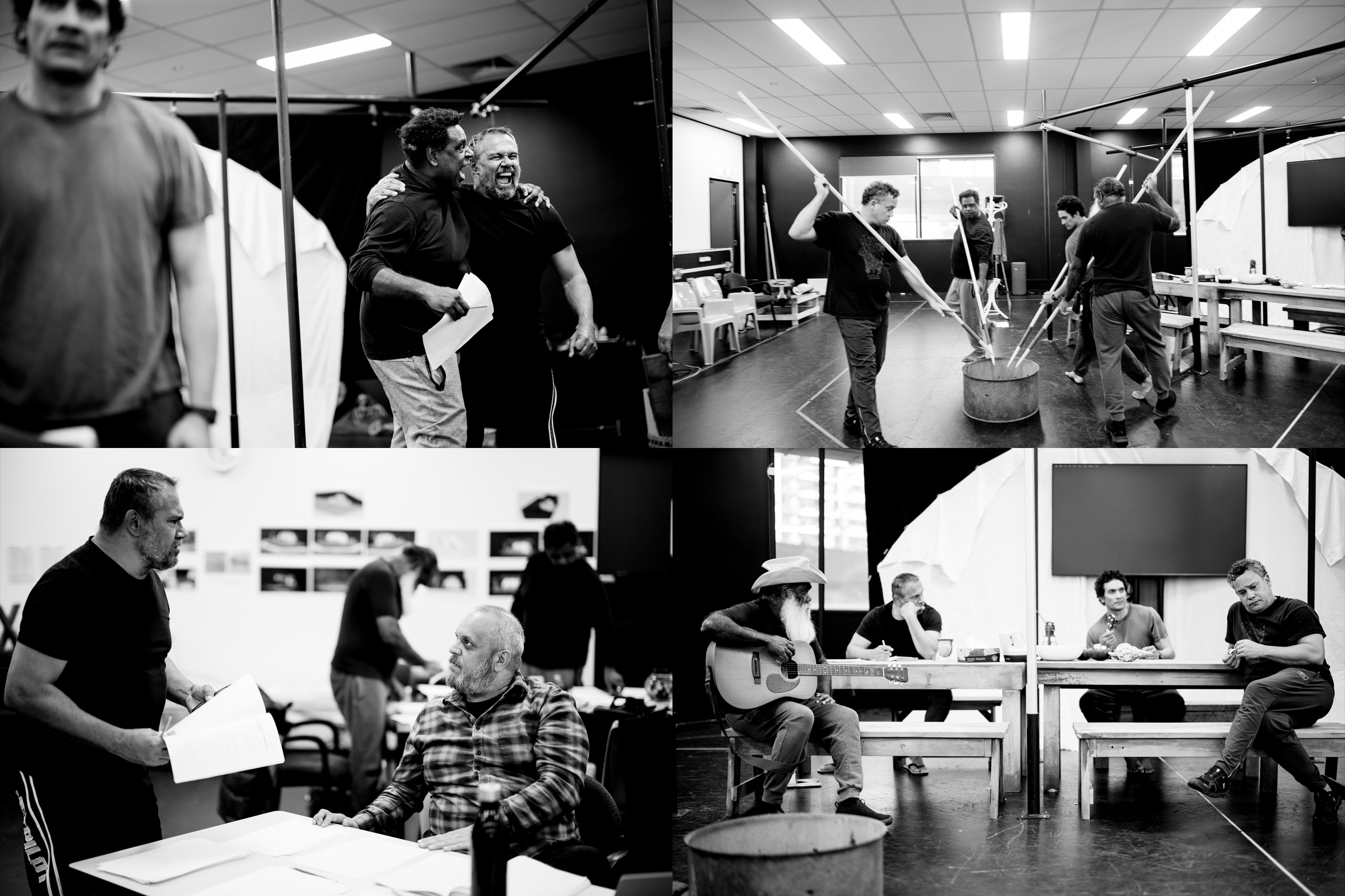 We are talking about a senior cast of Aboriginal and Torres Strait Islander men. Each come from a lot of experience in the theatre but a lot of life experience as well. We have Jimi Bani, who is the chief of the Wadagadum people in the Torres Strait. And we’ve got Trevor Jamieson, who’s an initiated man. We’ve got all of their experiences of life, life learnings, and wisdoms to draw from. They’ve been so generous to bring that part of themselves to the work because each of them are fathers and each of them are sons.