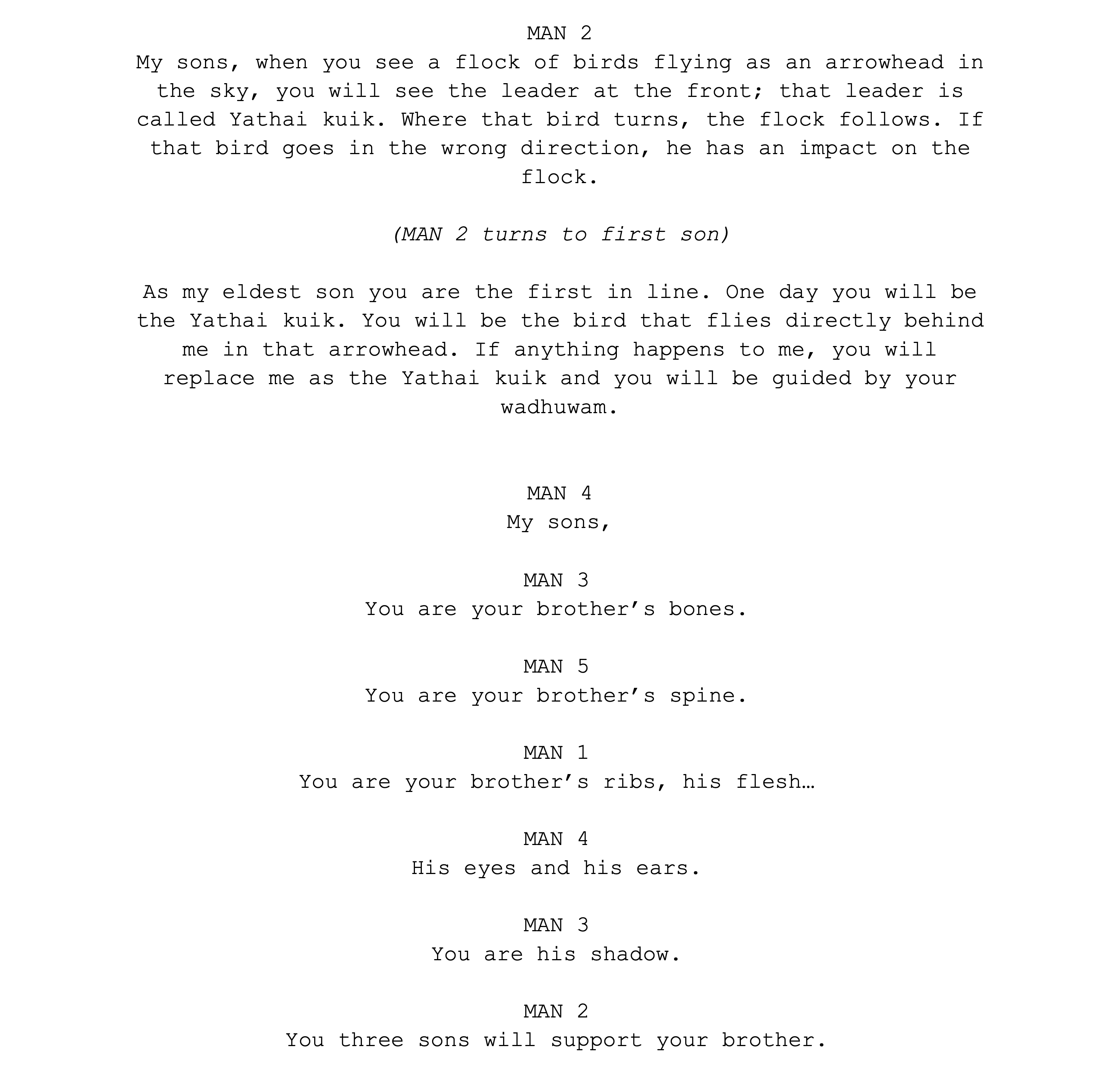 And he talks about the many dads that are involved in the bringing up of children. How we consider all the uncles our dads as well. So it’s not just one man’s, it’s not just the dad’s responsibility. It’s the uncle’s responsibility to take them through law. So in cultural and traditional societies that role and responsibility is a shared role between the uncles. I hope that sort of answers your question.